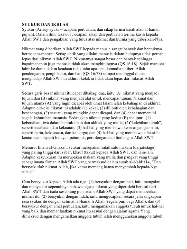 Syukur Dan Ikhlas