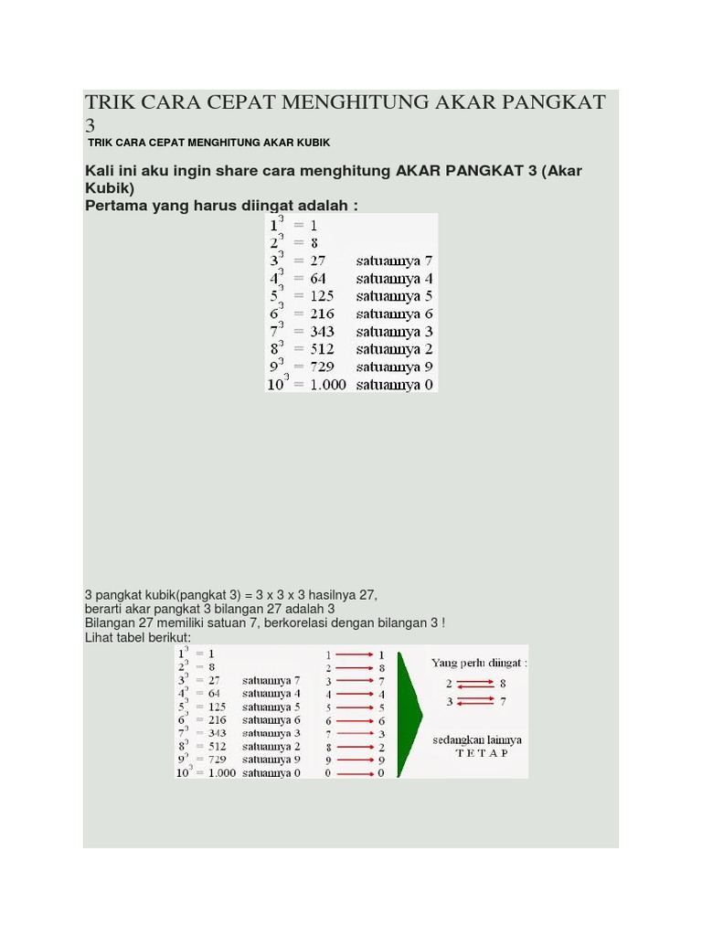 Trik Cara Cepat Menghitung Akar Pangkat 3