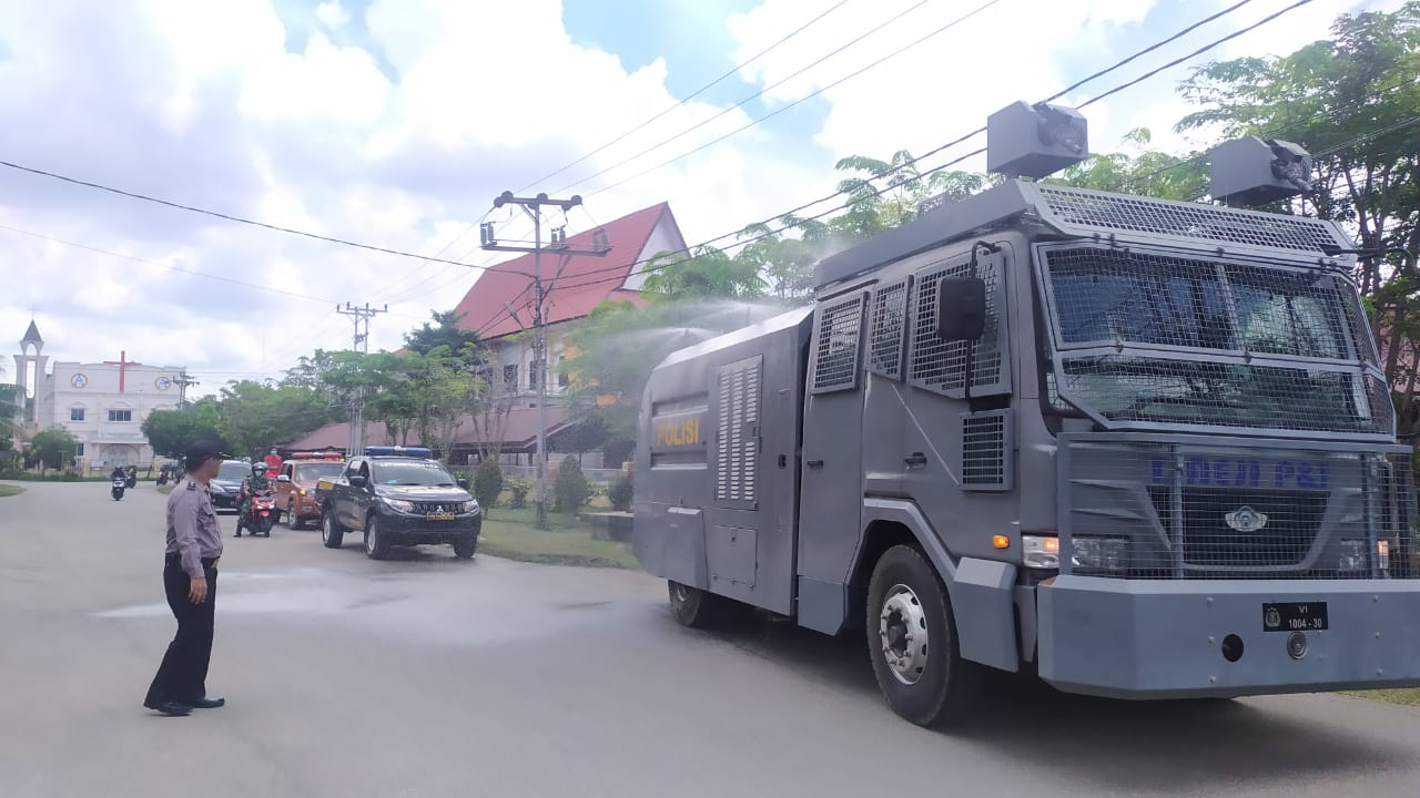 Polres Sanggau Gunakan Mobil Armoured Water Canon Semprotkan