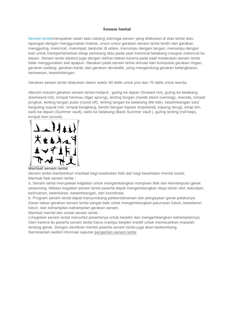Senam Lantai Pengertian Sejarah Jenis Unsur Tujan Manfaat