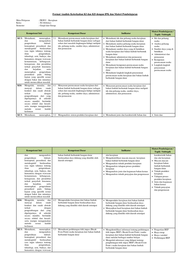 4 Analisis Keterkaitan Ki Dan Kd Dengan Ipk Dan Materi