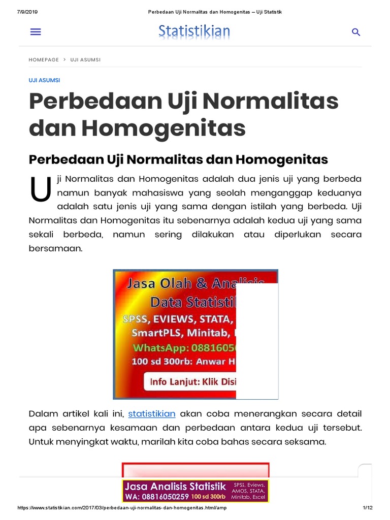 Perbedaan Uji Normalitas Dan Homogenitas Uji Statistik