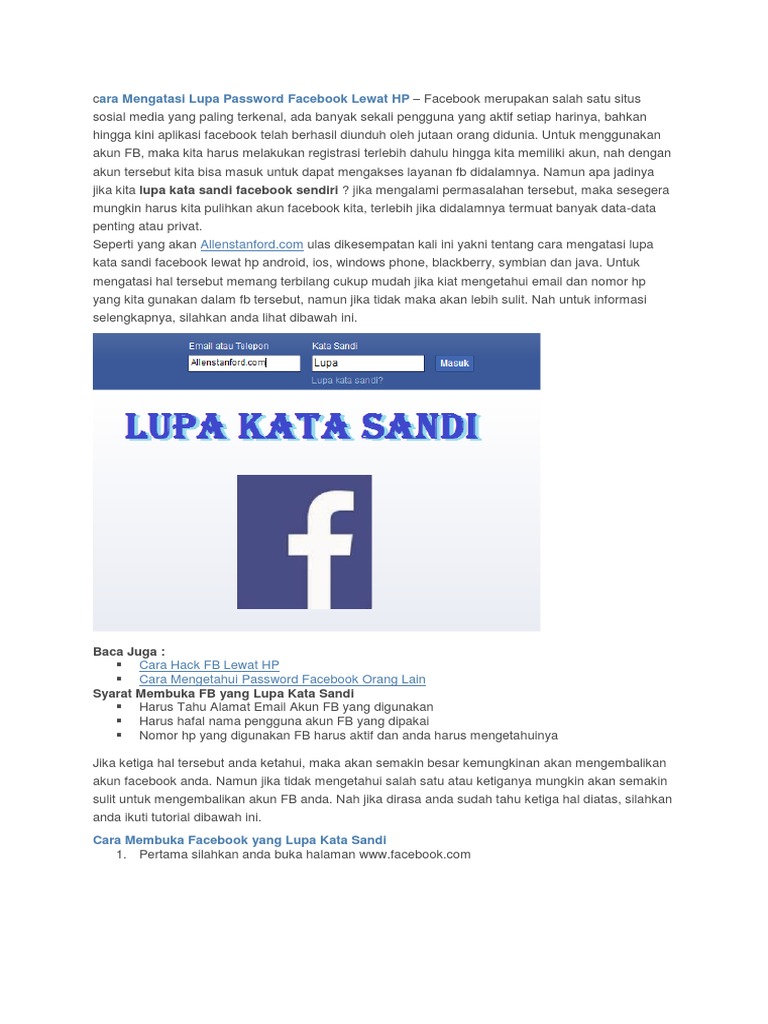 Cara Mengatasi Lupa Password Facebook Lewat Hp