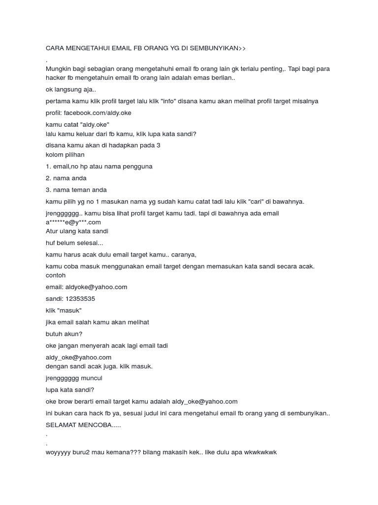Cara Mengetahui Email Fb Orang Yg Di Sembunyikan