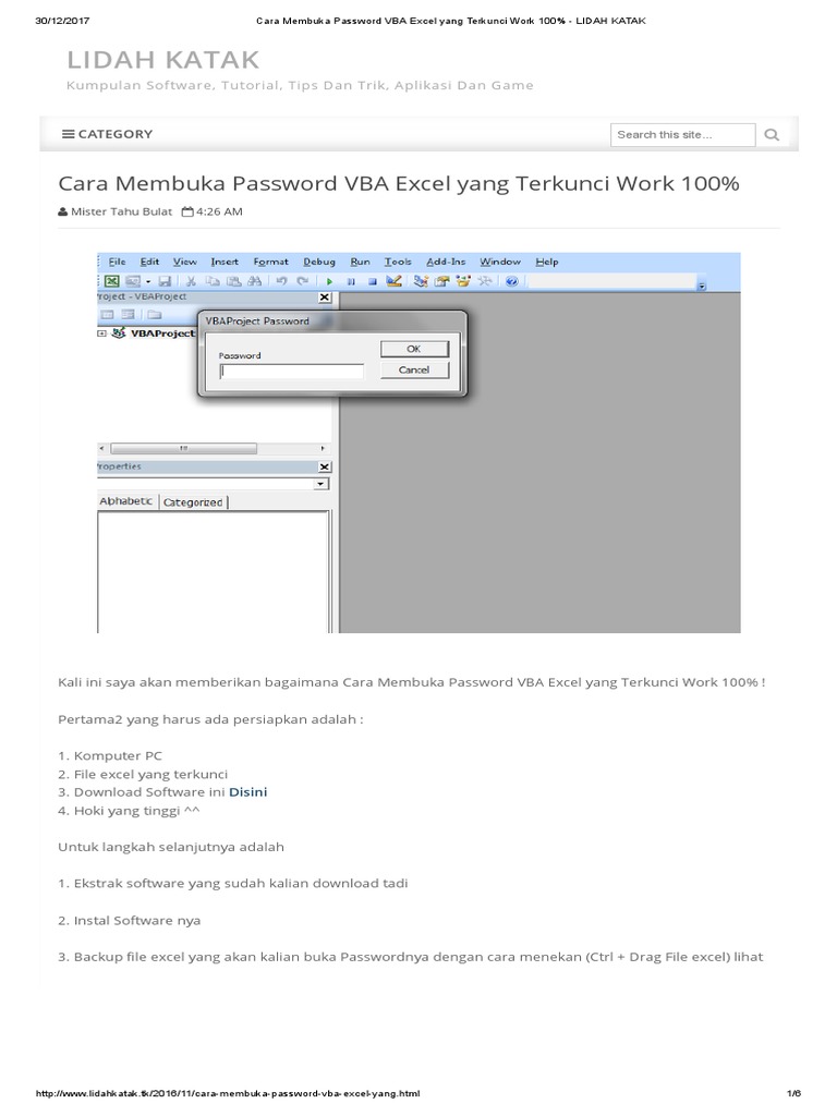 Cara Membuka Password Vba Excel Yang Terkunci Work 100
