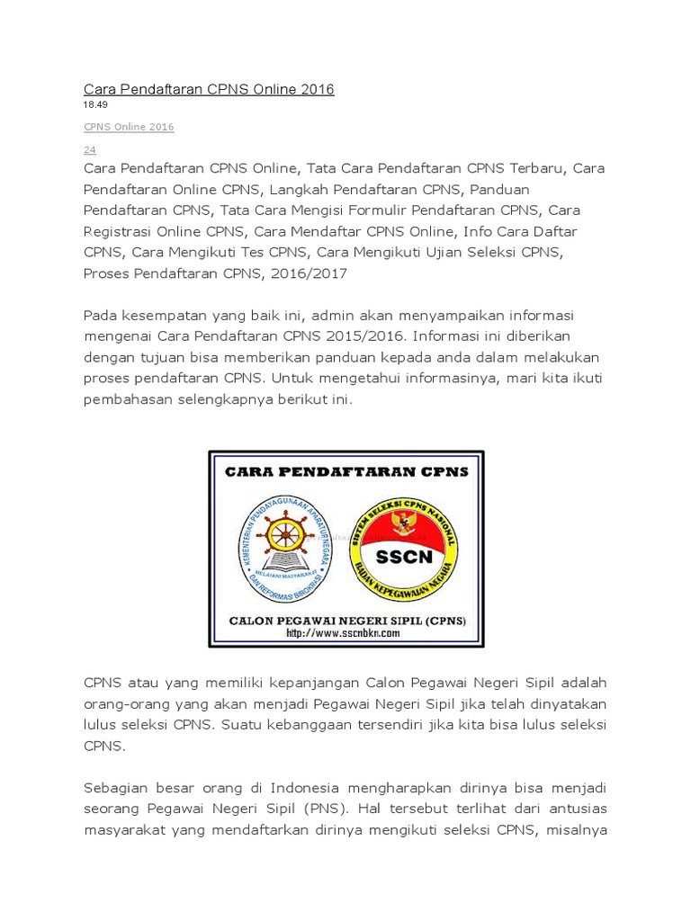 Panduan Cara Daftar Cpns 2018 Online