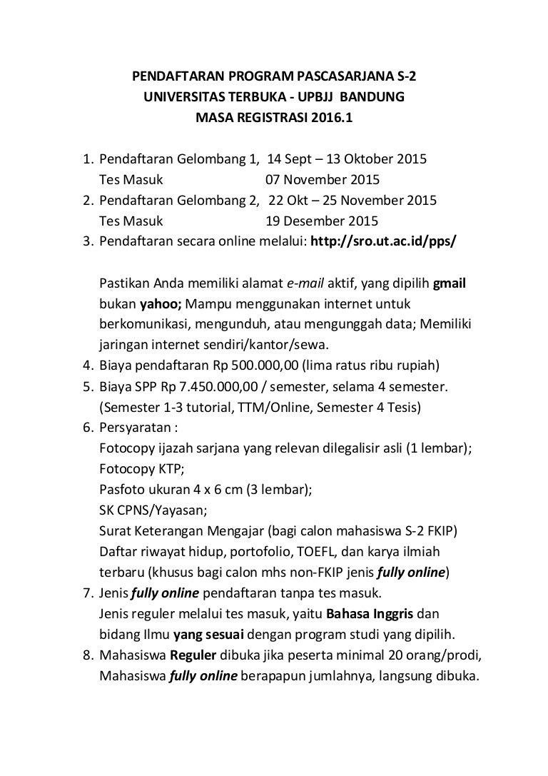 Pengumuman Pendaftaran Program Pascasarjana S 2 2016 1