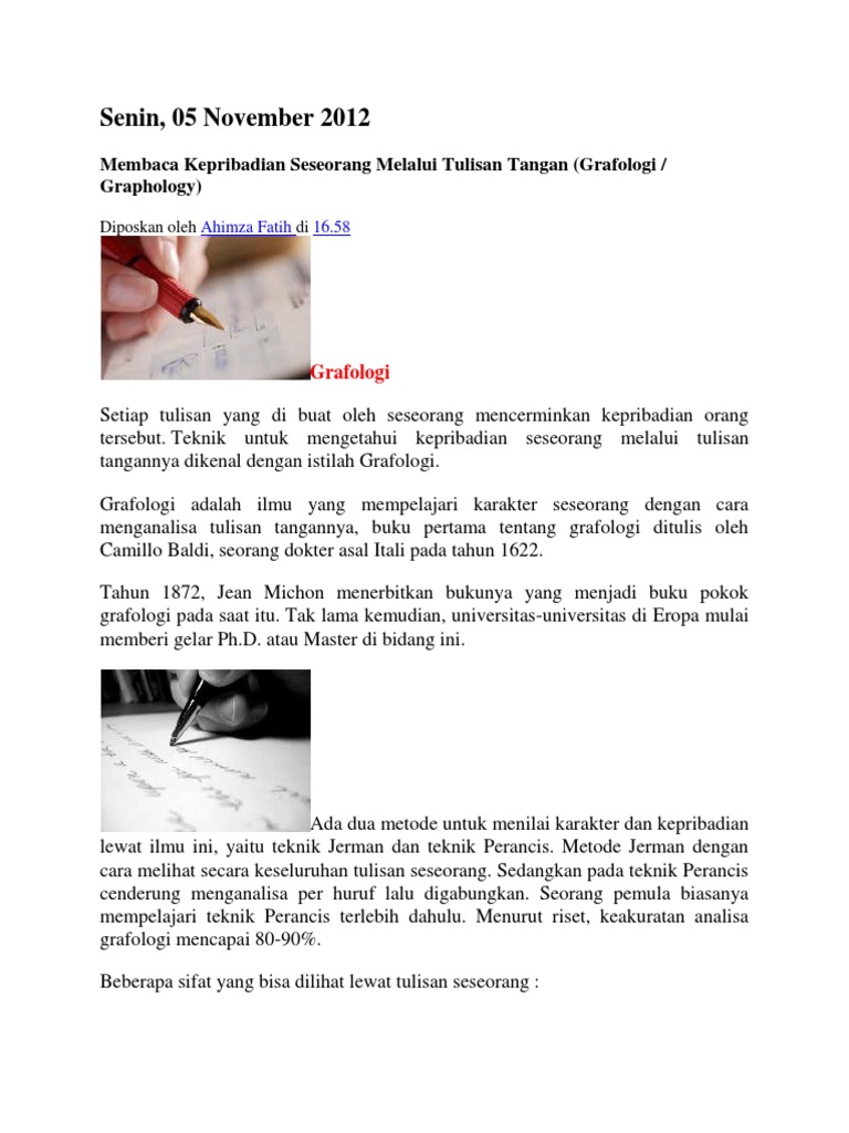 Cara Menganalisis Tulisan Tangan Grafologi Dengan Gambar
