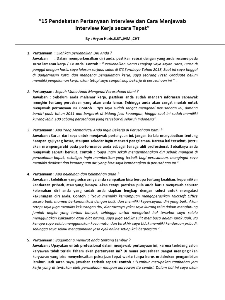 15 Pendekatan Pertanyaan Interview Dan Cara Menjawab 1 Docx