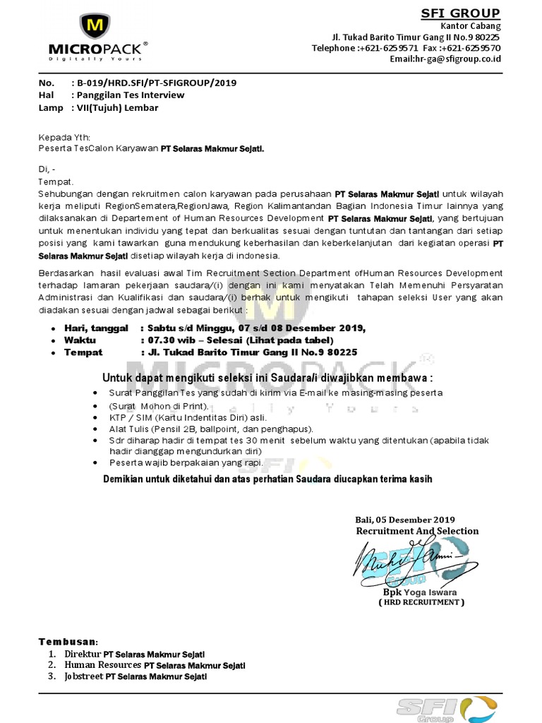 Undangan Interview Pt Selaras Makmur Sejati Pdf