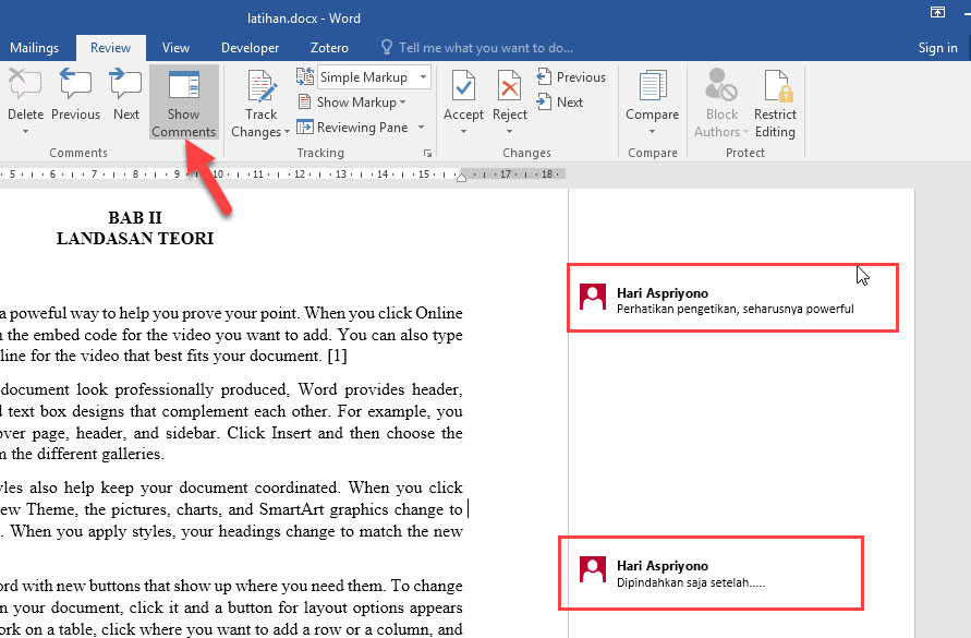 Menggunakan Komentar Di Microsoft Word Untuk Membantu Proses